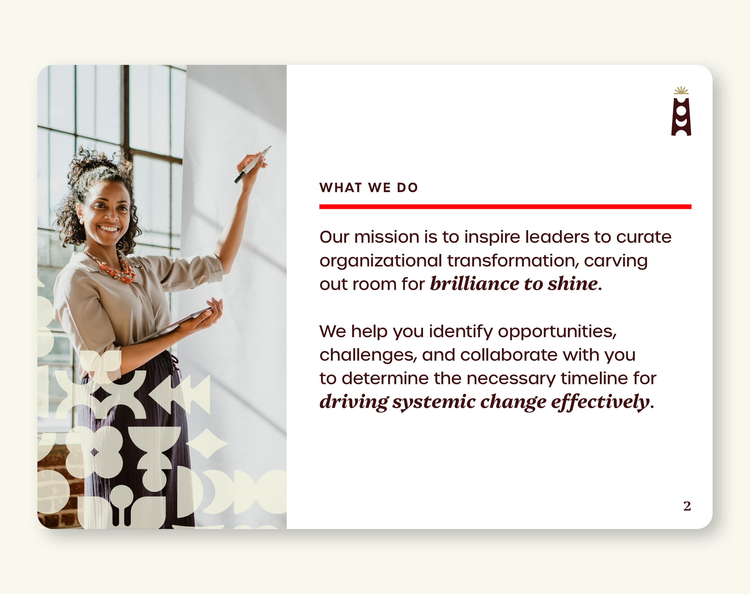 Ladder Leadership Services inspire leaders to curate organizational transformation, carving out room for brilliance to shine. They help to identify opportunities, challenges and collaborate with you to determine the necessary timeline for driving systemic change effectively.